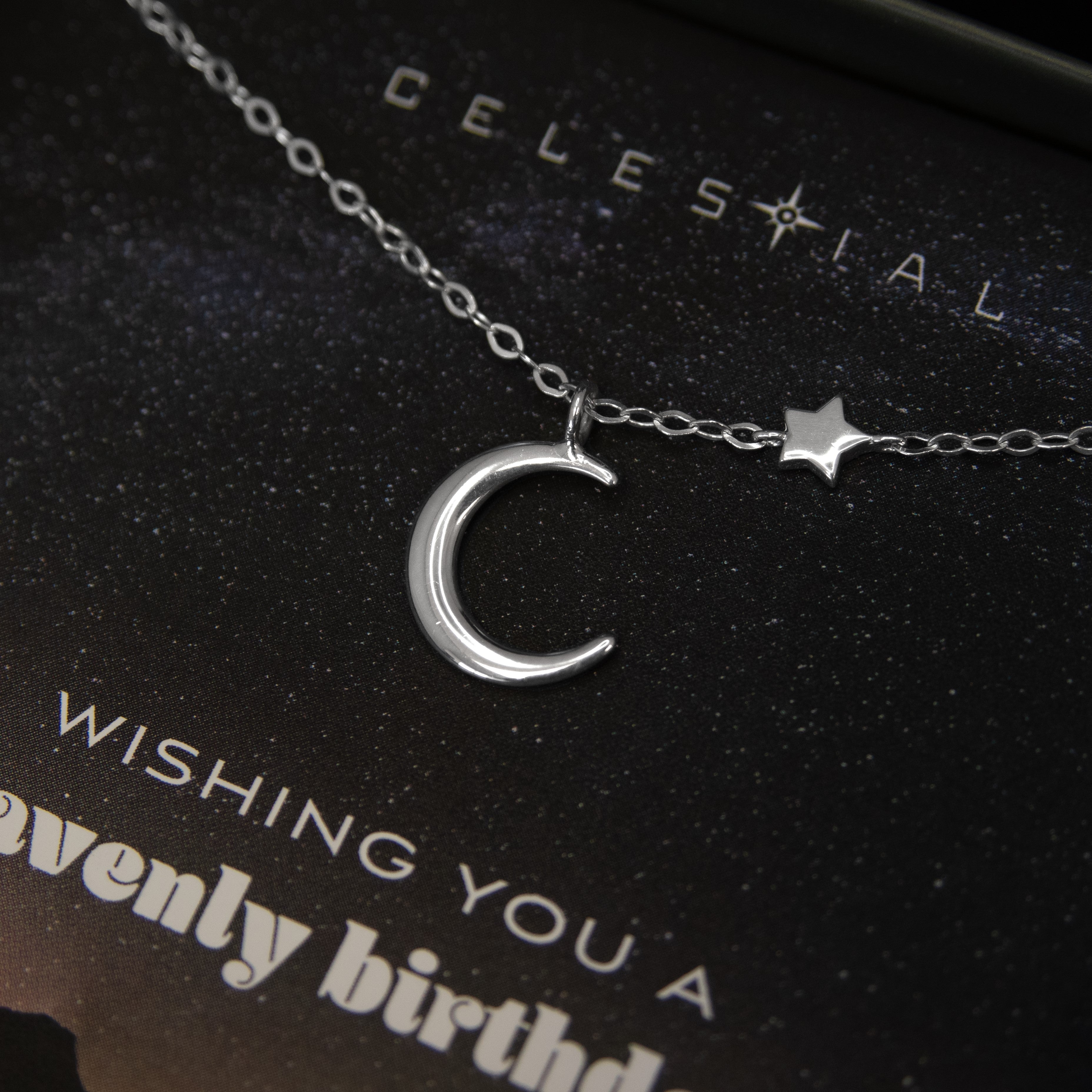 Our Amaris necklace makes a great birthday gift for your friend, niece, sister, or daughter who loves all things celestial. When she wears this classic moon and star necklace, she'll have a reminder of your connection that she...
